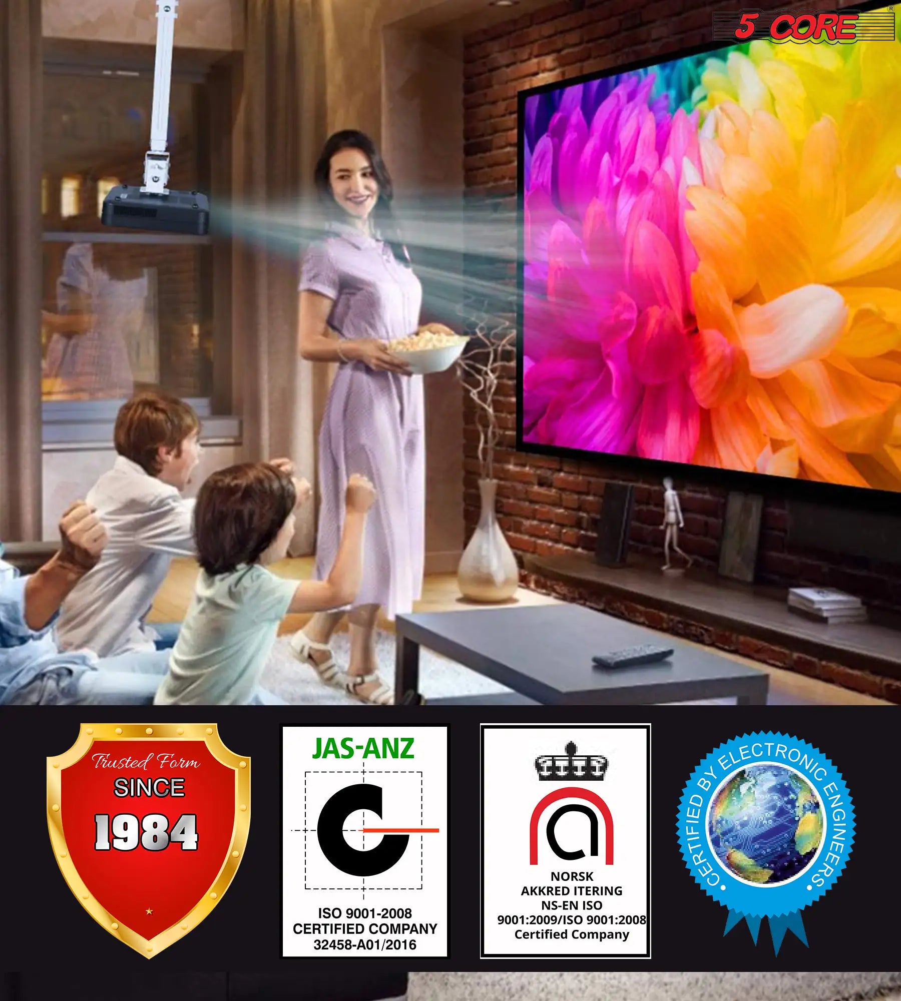 Are you ready to transform your home or office into a cinema-like experience? Look no further than our amazing projector mount! This projector ceiling mount is designed to save space and provide perfect viewing positions, with a sleek white powder-coated finish that complements any decor. 5 Core projector mounting for the ceiling is compatible with most projectors and supports up to 40 lbs; this projector mount ensures stability and durability to keep your expensive equipment safe and secure. The upgraded 3 in 1 mount design allows for flexible installation on wood studs, concrete, and various ceiling types.At 5 Core, Customer satisfaction is our priority a proven track record of delivering the highest quality product since 1984. |